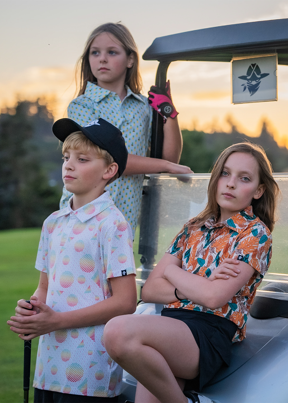 Golf Bandit creates bold, high-performance junior golf polos for boys and girls aged 7–14. Designed with input from real junior golfers, our youth golf apparel is built for comfort, movement, and style on the course. Every polo features SPF 50 sun protection, anti-odor technology, moisture-wicking fabric, wrinkle resistance, and 4-way stretch — everything young golfers need to play their best. Whether you're shopping for kids golf shirts, US Kids Golf alternatives, or fun youth golf apparel that stands out at tournaments, camps, or casual rounds, Golf Bandit delivers parent-approved gear for the next generation of the game.